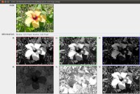 Grit (hier in Version 3) ist ein Bildanalyseprogramm. Es besteht aus sieben Bildfeldern, die einzelne Komponenten eines Bildes anzeigen. Um ein Bild zu laden, muss man die Bilddatei mittels Drag & Drop in das oberste Bildfeld ziehen. Die anderen Felder zeigen dann die drei RGB-Farbkanäle sowie den Farb-, Sättigungs- und Intensitätskanal.