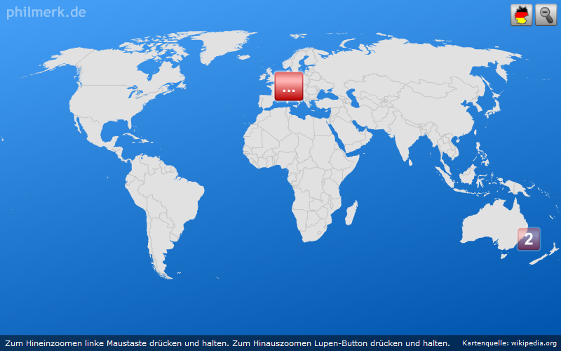 Es gibt auch einen Knopf, mit dem man direkt auf Deutschland zoomen kann, da beim ürsprünglichen Anwendungsgebiet verständlicherweise dort am meisten Personen zu finden waren. Es genügt, diesen Knopf nur ganz kurz zu klicken, um den Zoomvorgang durchzuführen.